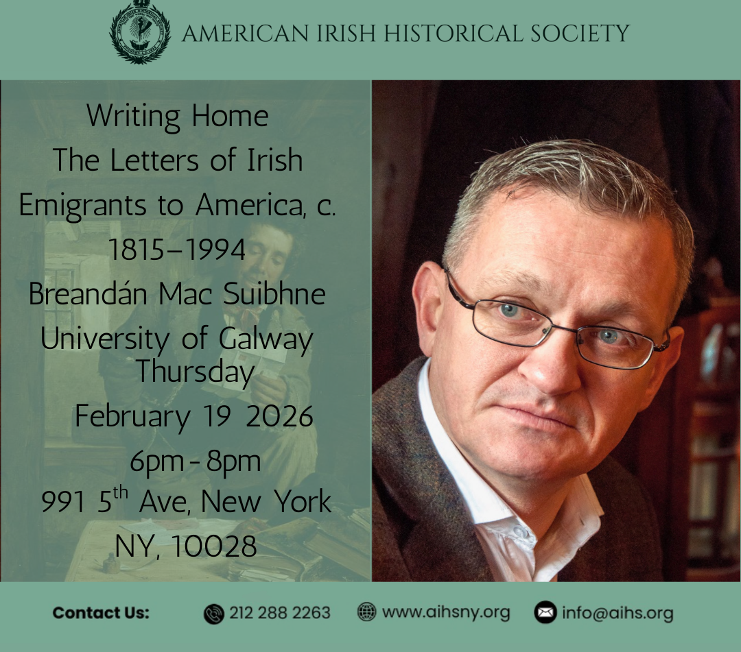 6:00 PM 8:00 PM Google Calendar ICS This exhibit, running through the course of 2026, uses the archives of the American Irish Historical Society to display the history of Irish America. 250 years after 1776, we look back on the contributions and stories of Irish emigrants and their descendants in American history. In collaboration with Irish America 250, this […]